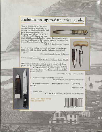 Boulder: Paladin Press, 1998, 1998. Hard Cover. As New/As New. Second Edition. 4to - over 9¾" - 12" tall. Many photographs and illustrations of some of the most attractive knives ever made. The knifemakers of San Francisco produced a style of Bowie which emphasised the status of the owner. There could there have been no better way to celebrate success and establish your status in the gold rush era than to be seen wearing one of these fine art knives.